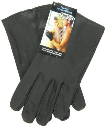 Called "Vampire Gloves" because of their sensual bite, long, smooth, light strokes with the prickly metal tacks set into the fingertips of these sexy leather gloves are guaranteed to cause goosebumps. Especially delicious with a blindfold. Available in sizes XS - XL to fit everyone from the smallest woman to the largest man.KinkLab Vampire Gloves, Large Review